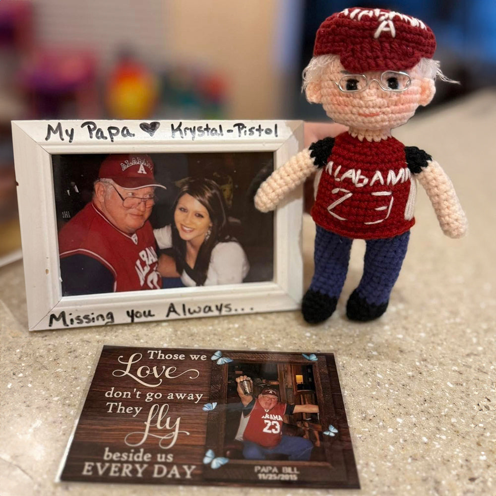 Personalized Crochet Doll with Photo Card "Those We Love Don't Go Away"