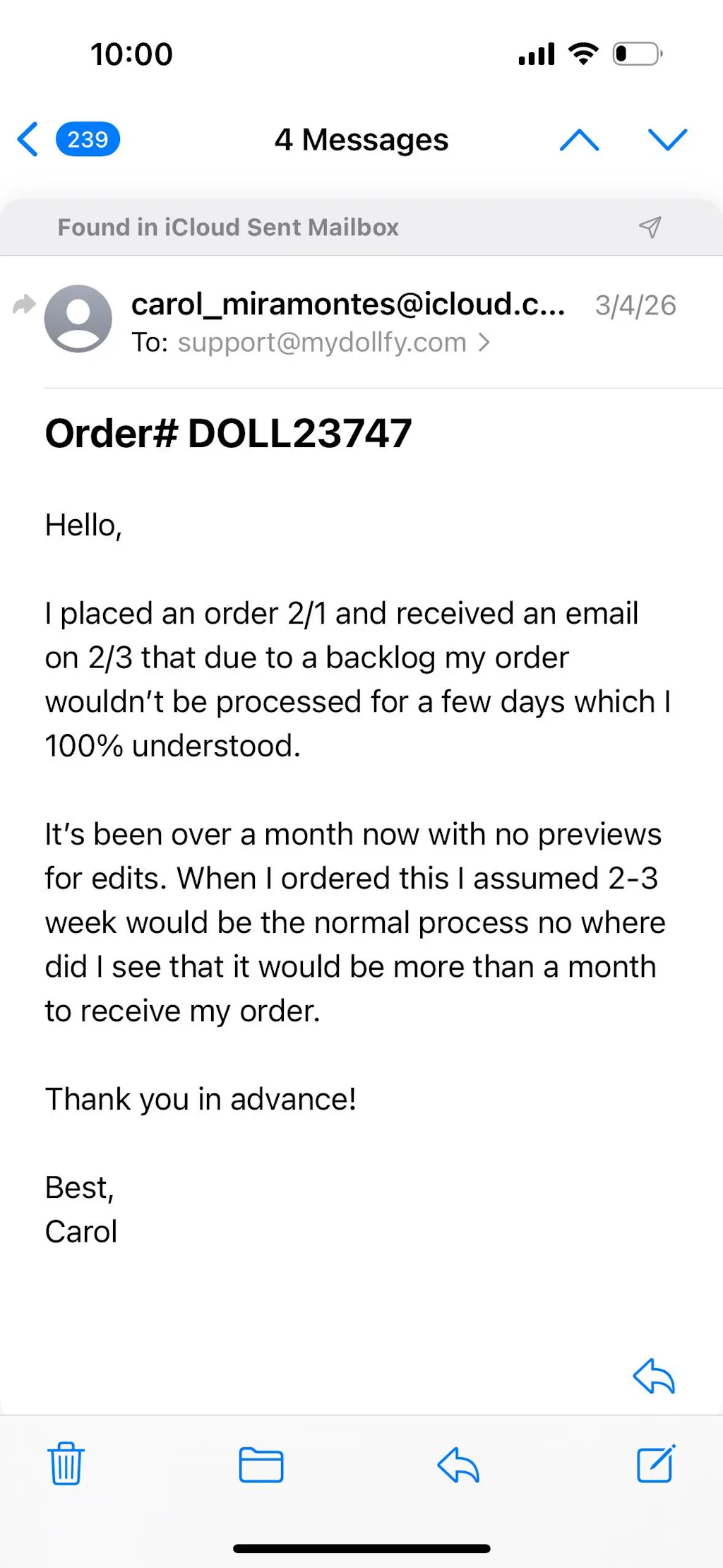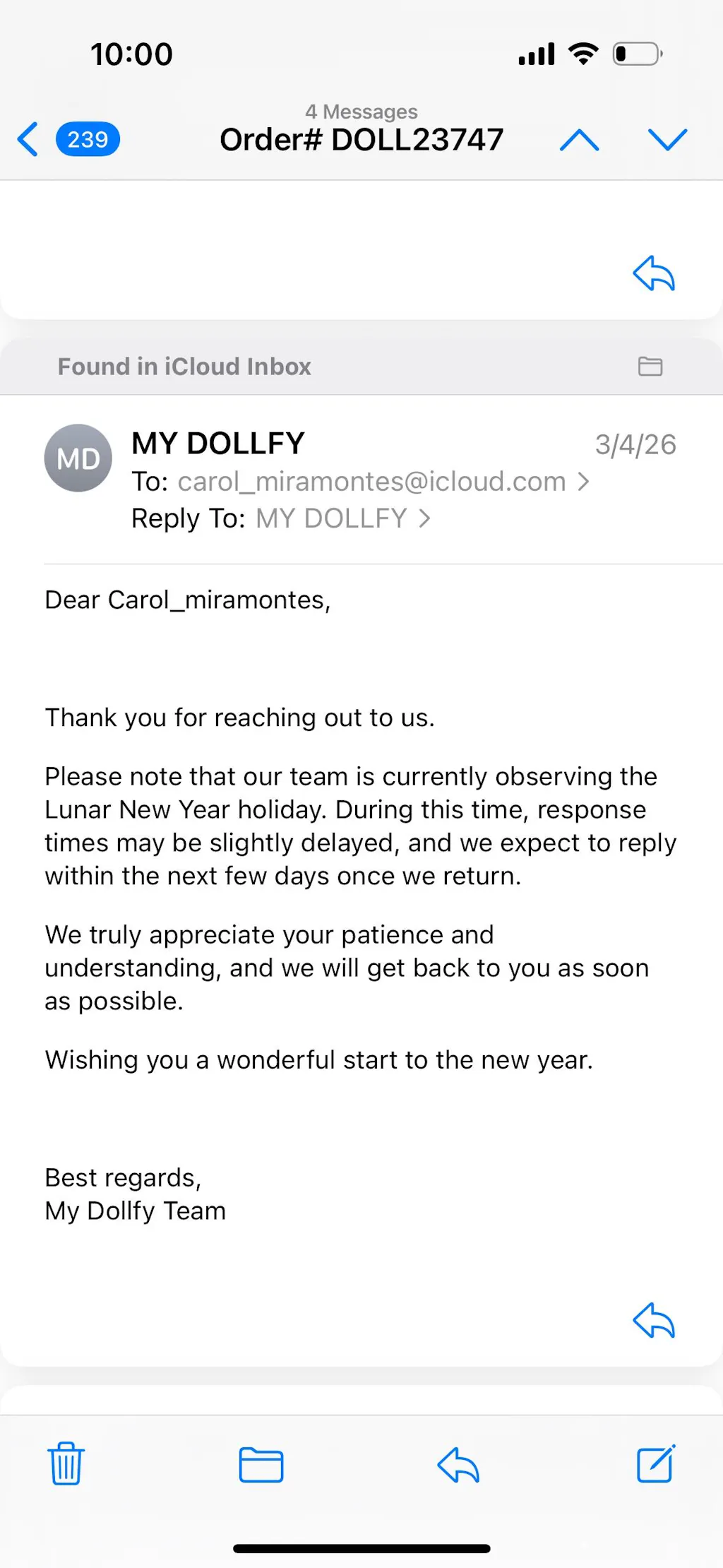 If you have any further questions, please email us at support@mydollfy.com